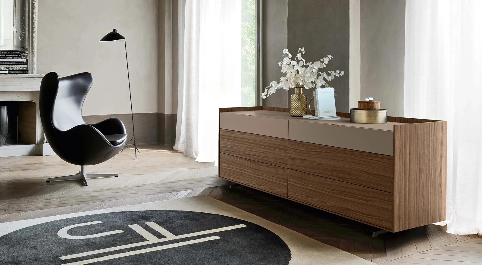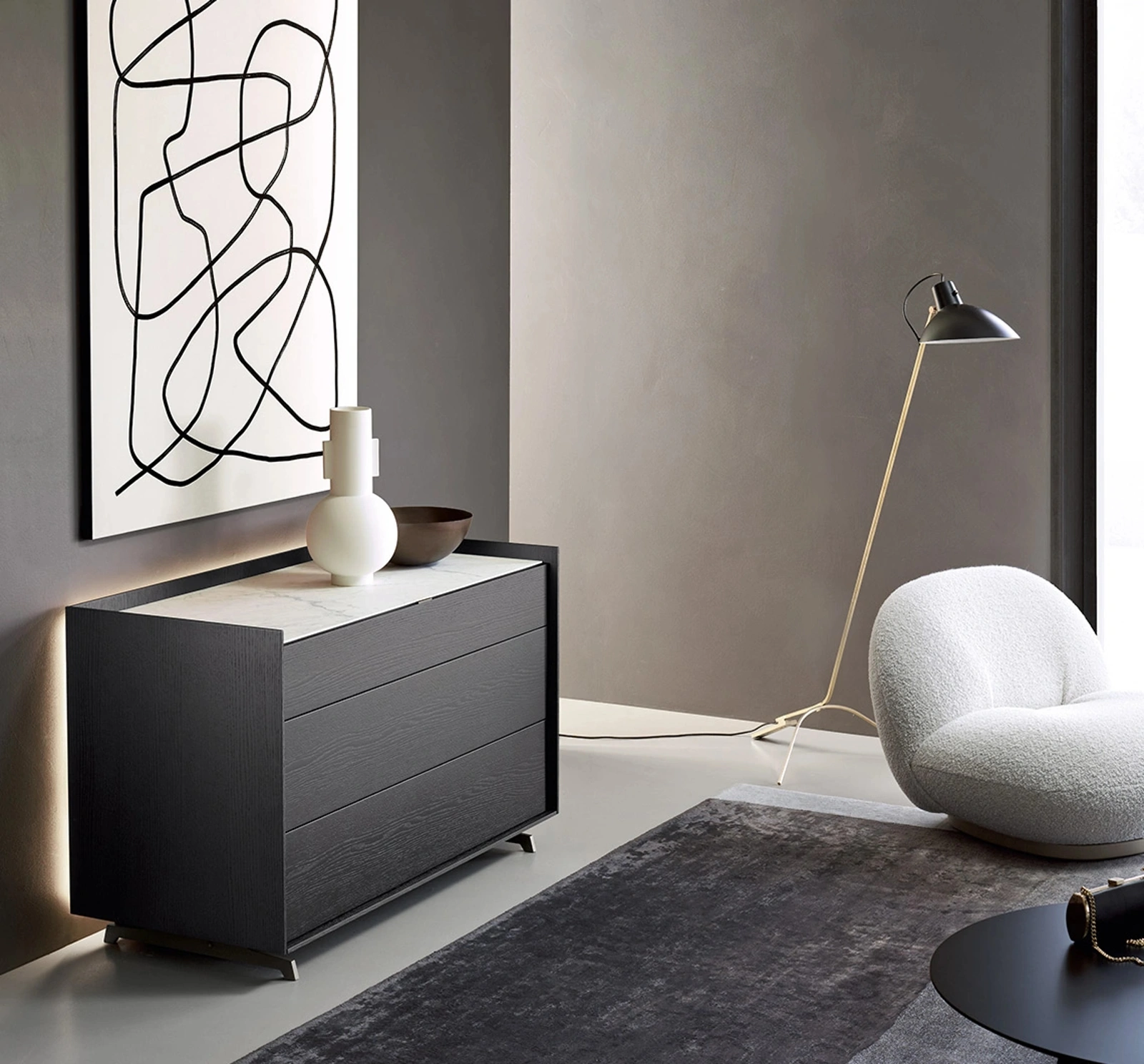 Una ricca gamma di mobili con cassetti Sangiacomo: i comodini moderni in legno, come Cabaret Comò, sono tra le proposte più belle.