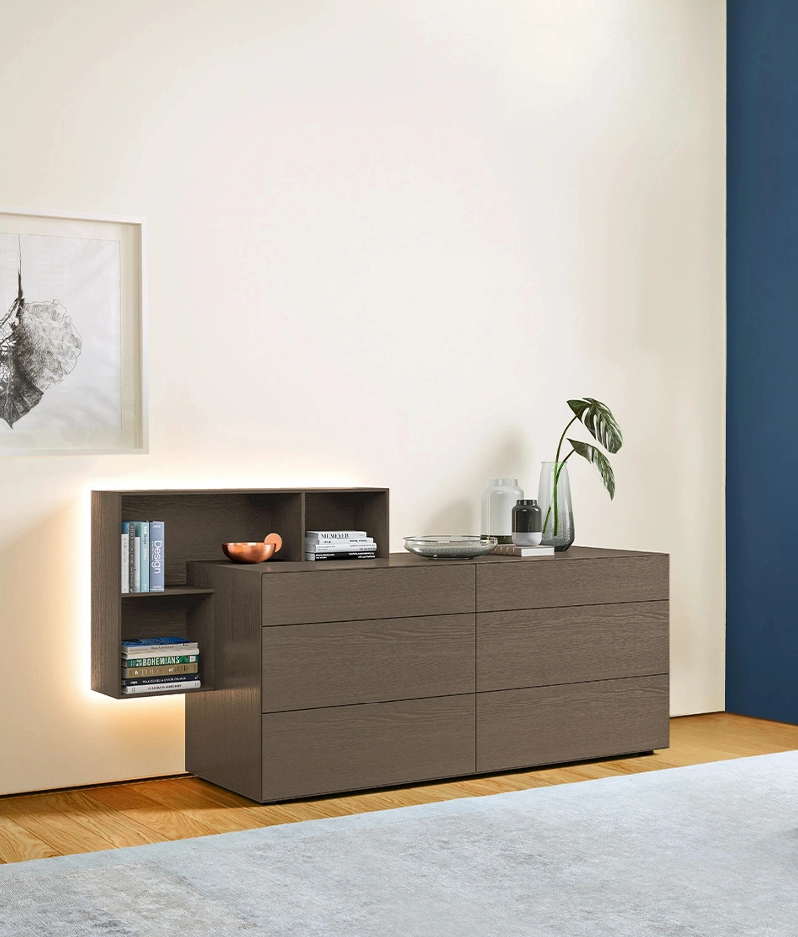 Vuoi allestire la zona notte con Comodini e mobili con cassetti di Sangiacomo? Ecco qui il modello Domino Componibile Comò in legno per spazi design.