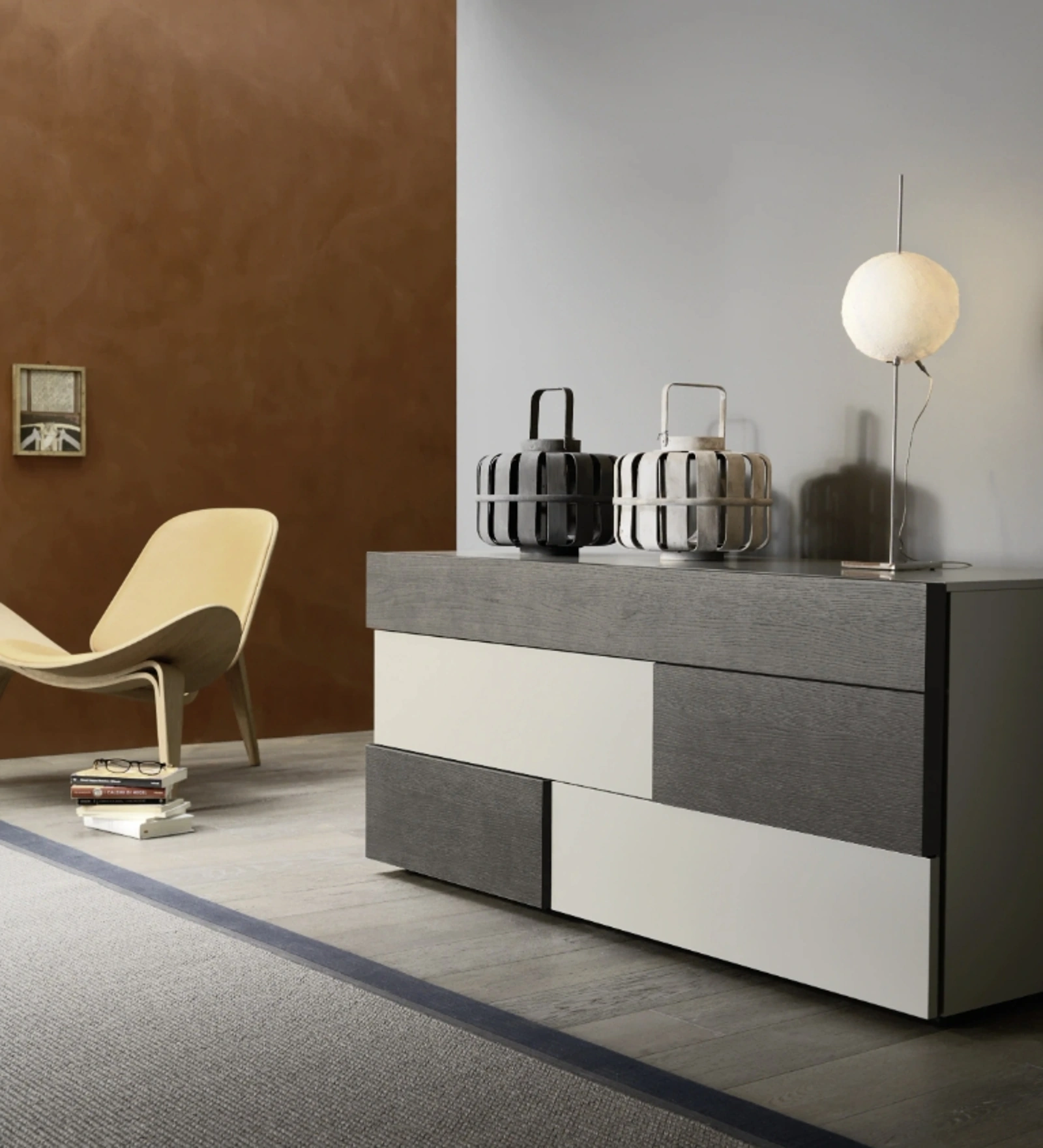 Materiali di qualità e lavorazioni eccellenti per il Comò Insieme di Sangiacomo in in laccato opaco, disponibile in negozio con le altre varie offerte della firma, per fare della camera da letto uno spazio che rispecchi i tuoi gusti. Ti chiedi come abbinare letti, armadi e comodini? Con il modello di Sangiacomo visibile in foto avrai un pezzo di arredamento studiato per uno spazio dai richiami moderni.