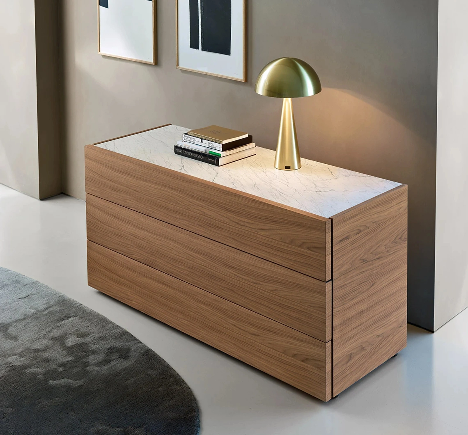 Vuoi progettare la camera da letto con Comodini e cassettiere di Sangiacomo? Ecco qui il modello Status Comò in legno per spazi design.