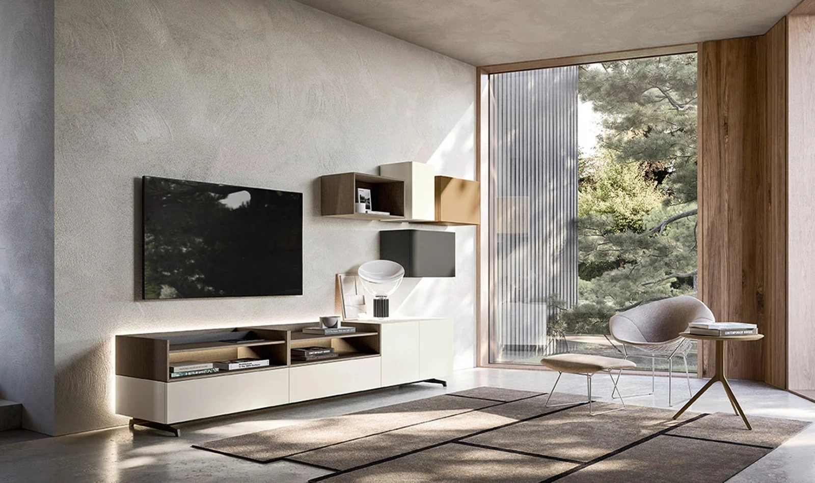 Le Pareti Attrezzate moderne consentono di ricreare diverse atmosfere nel living, liberando spazio e sfruttando bene ogni angolo.