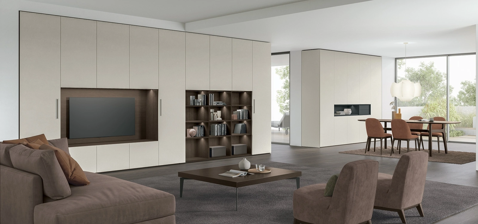I mobili soggiorno in melaminico dalle linee moderne come il modello in foto sono veramente eclettici e capaci di ammobiliare la zona giorno sfruttando bene ogni angolo. Tomasella offre a catalogo inediti modelli di mobili soggiorno, diversi per stile e conformazioni, texture e componenti: scopri nel nostro showroom l'Arredamento Casa dei migliori brand. La Parete Attrezzata Logica Plus UNIT 01 di Tomasella in foto è una delle più esclusive soluzioni d’arredo sul mercato: componibilità personalizzabile e le differenti opportunità di progettazione la rendono bella e di grande qualità. Visto che il living deve essere uno spazio agevole e bello da vedere, sono molto utili alcuni arredi belli e pratici come le Pareti Attrezzate.