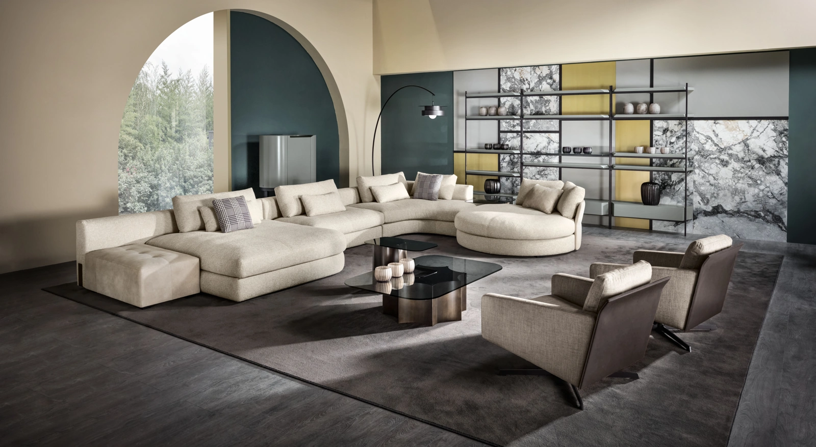 Il catalogo Cantori presenta tanti spunti per arredare gli interni in nome di praticità e valore estetico, mettendo al centro il tuo comfort. Se desideri imbottiti ad angolo come il modello nell'immagine, contraddistinto dai volumi che invitano a trascorrere i tuoi momenti di riposo. La serie di divani del brand in questione propone tanti spunti peculiari per arredare il living in nome di praticità, comfort e stile. Divano componibile Oasi di Cantori: ricrea uno spazio intimo e confortevole in spazi moderni di gran classe. I nostri Salotti vengono progettati per essere abbinati a elementi accessori di ogni tipo, come tavolini, lampade e piantane oppure in combinazione con ulteriori divani in tessuto.