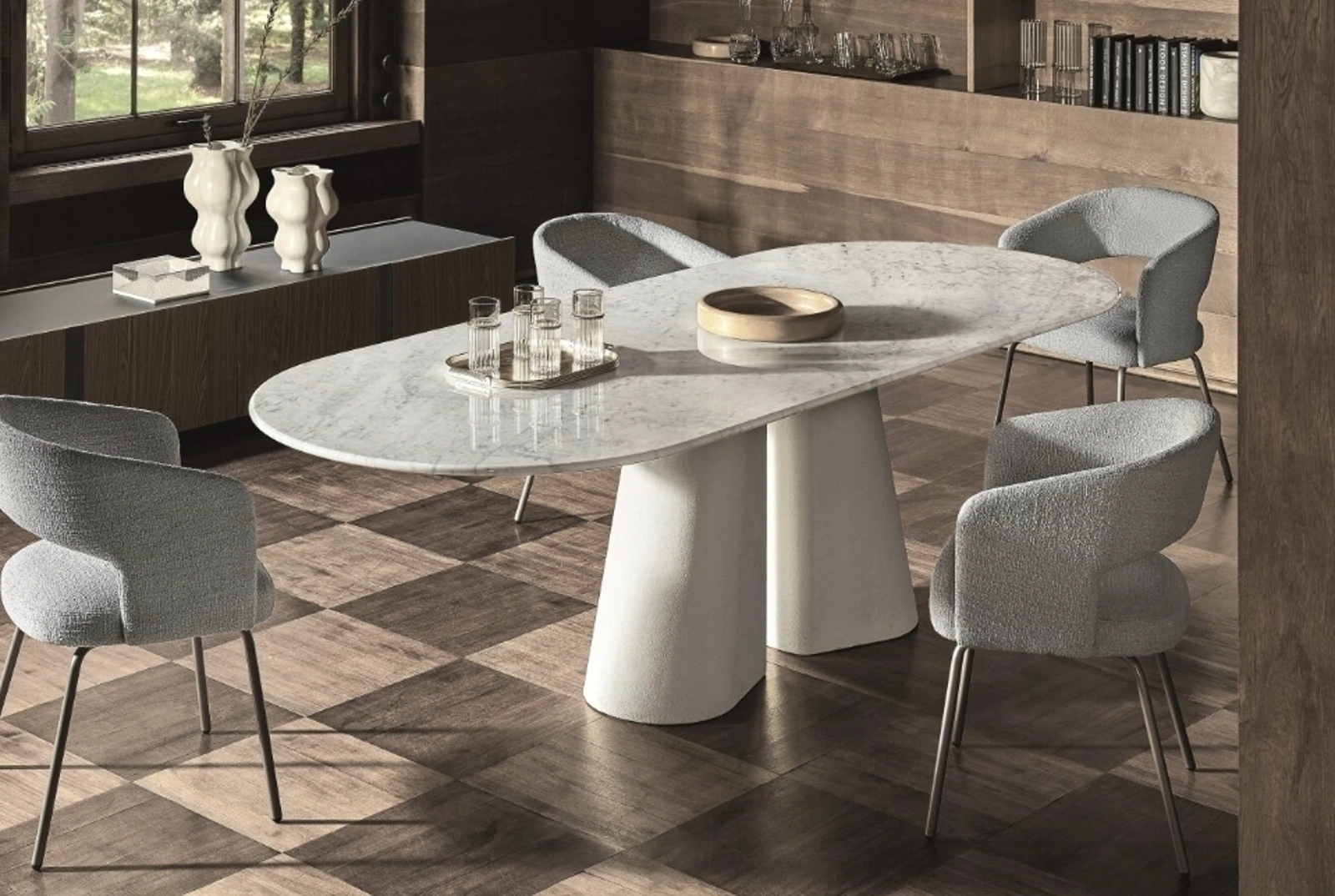 Vuoi valorizzare spazi design? Ottieni informazioni sui tavoli design fissi: il modello da pranzo Pillar ti attende.